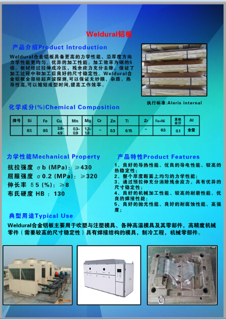 模具專用鋁合金的牌號:HOKOTOL、GIANTAL、WELDURAL、7075T651、7475、7050、2024、6061等。