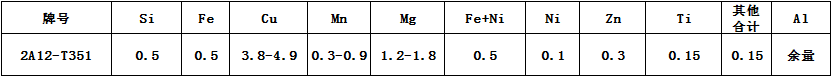 2A12為Al-Cu系中的典型硬鋁合金,狀態T351,其成份比較合理,綜合性能較好,是硬鋁中用量最大的。強度高,有一定的耐熱性,強度比7075合金的還高。熱狀態、退火和新淬火狀態下成型性能都比較好,熱處理強化效果顯著。抗蝕性較差,但用純鋁包覆可以得到有效保護;焊接時易產生裂紋,但采用特殊工藝可以焊接,也可以鉚接。